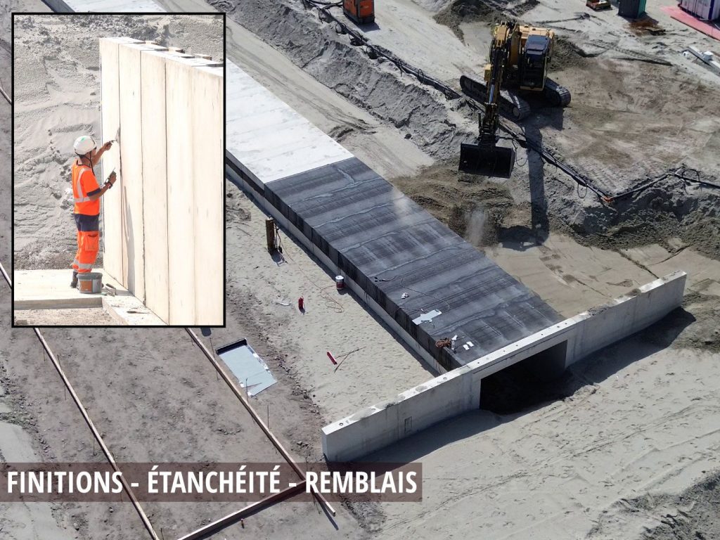 Finition par nos équipes, réalisation de l’étanchéité et remblaiement